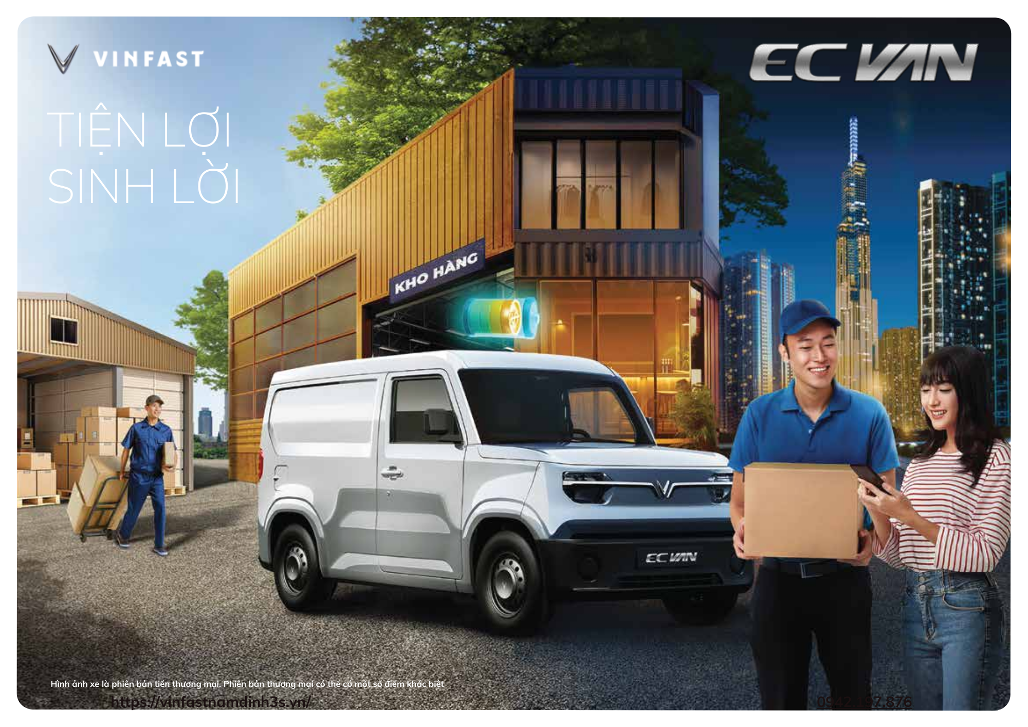 Mở đầu kỷ nguyên vận tải xanh với VinFast EC VAN, dòng xe điện chuyên dụng được thiết kế để tối ưu hóa hiệu quả kinh doanh. Với thông điệp “Tiện lợi sinh lời”, EC VAN không chỉ là phương tiện di chuyển mà còn là giải pháp tài chính thông minh cho các chủ kho hàng, hộ kinh doanh và doanh nghiệp giao vận hiện đại.