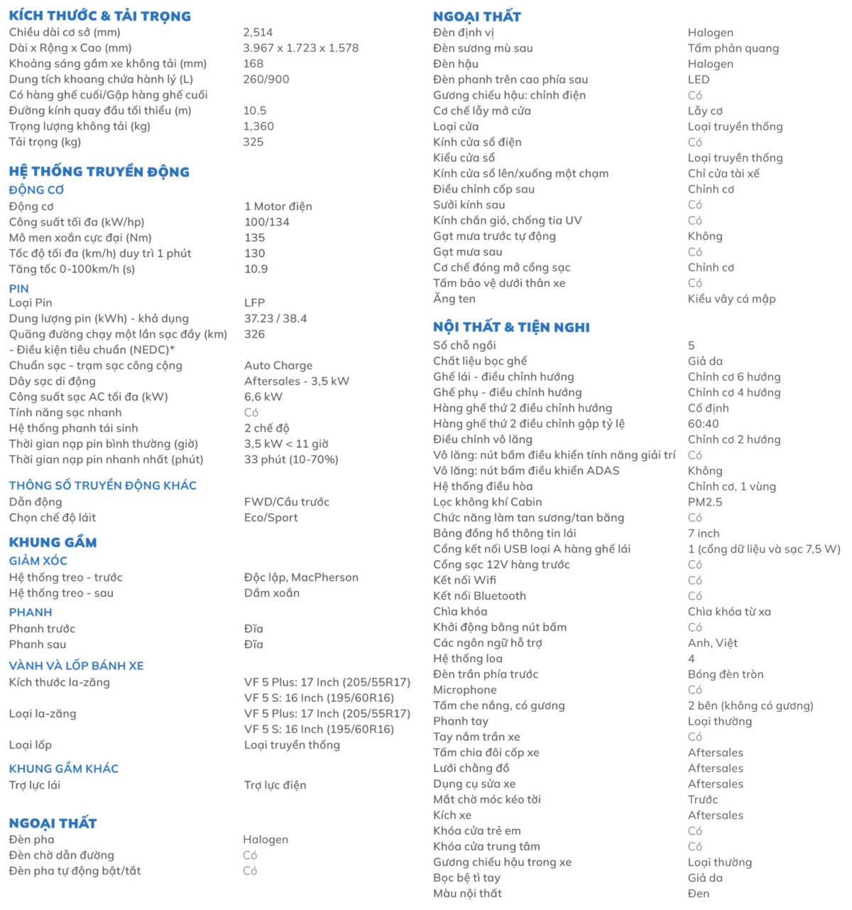 Bảng thông sô kỹ thuật xe ô tô VinFast VF 3.